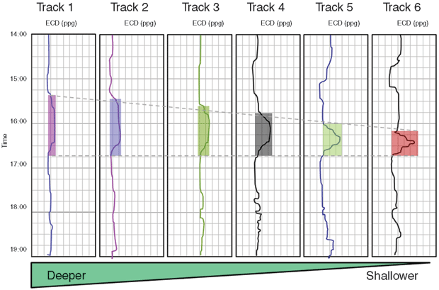 As commonly practiced, weighted sweeps were pumped for hole cleaning, but now the effectiveness was evaluated through the along-string annular pressure measurements independent from surface observations. Downhole measurements led to an increase in frequency for pumping sweeps, with sweeps pumped in tandem. In practice, while one sweep was in the annulus, the second sweep was already pumped.