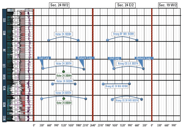 “On all four of our U-wells, we switched between Niobrara Chalk benches,” he explains. “Two of the wells went from the Niobrara B to A and the other two wells went from Niobrara C to B. The benches are each separated by approximately 100 feet of true vertical depth.”